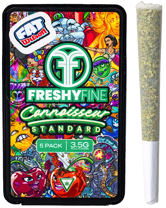 Freshy Fine Fat Wilson five pack delivers tingly, hungry relaxation in 3.5g. Spicy sweet hybrid for chronic pain, nausea, stress relief.