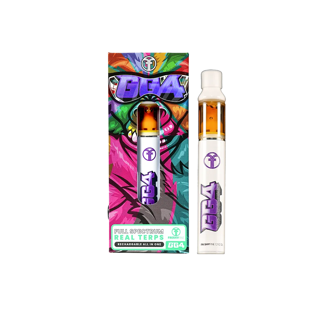 Freshy Fine GG4 vape unleashes potent body high, euphoria, and uplifting effects. Gorilla Glue #4 live resin for insomnia, appetite loss, migraines—portable power.