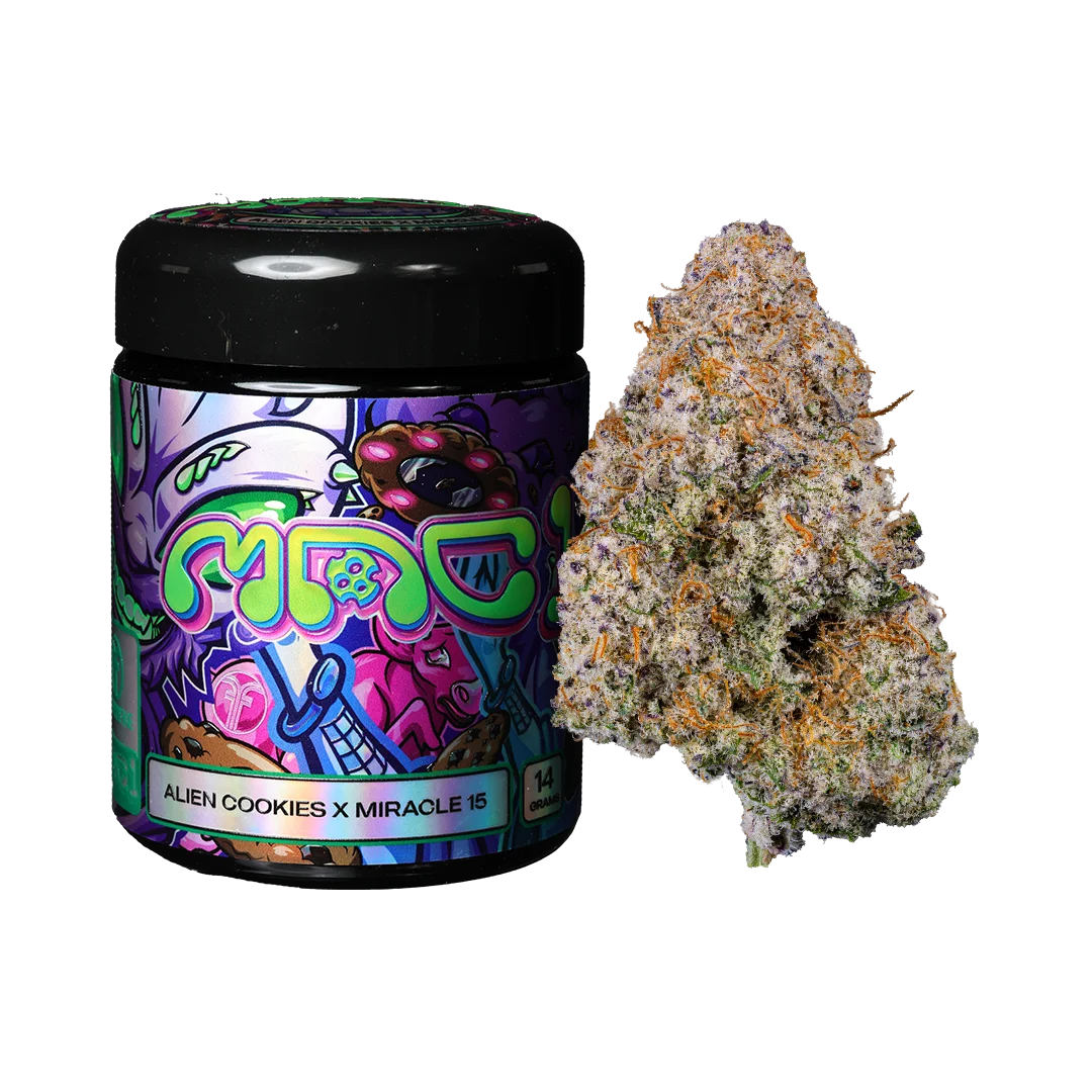 Elevate your inspiration with Freshy Fine MAC 1 (Miracle #15 x Alien Cookies) — a 14g premium hybrid flower jar renowned for its smooth potency and energizing clarity. This celebrated strain blend combines Miracle #15’s uplifting freshness with Alien Cookies’ balanced calm, delivering a clean, euphoric high that’s ideal for creative sessions or productivity boosts.